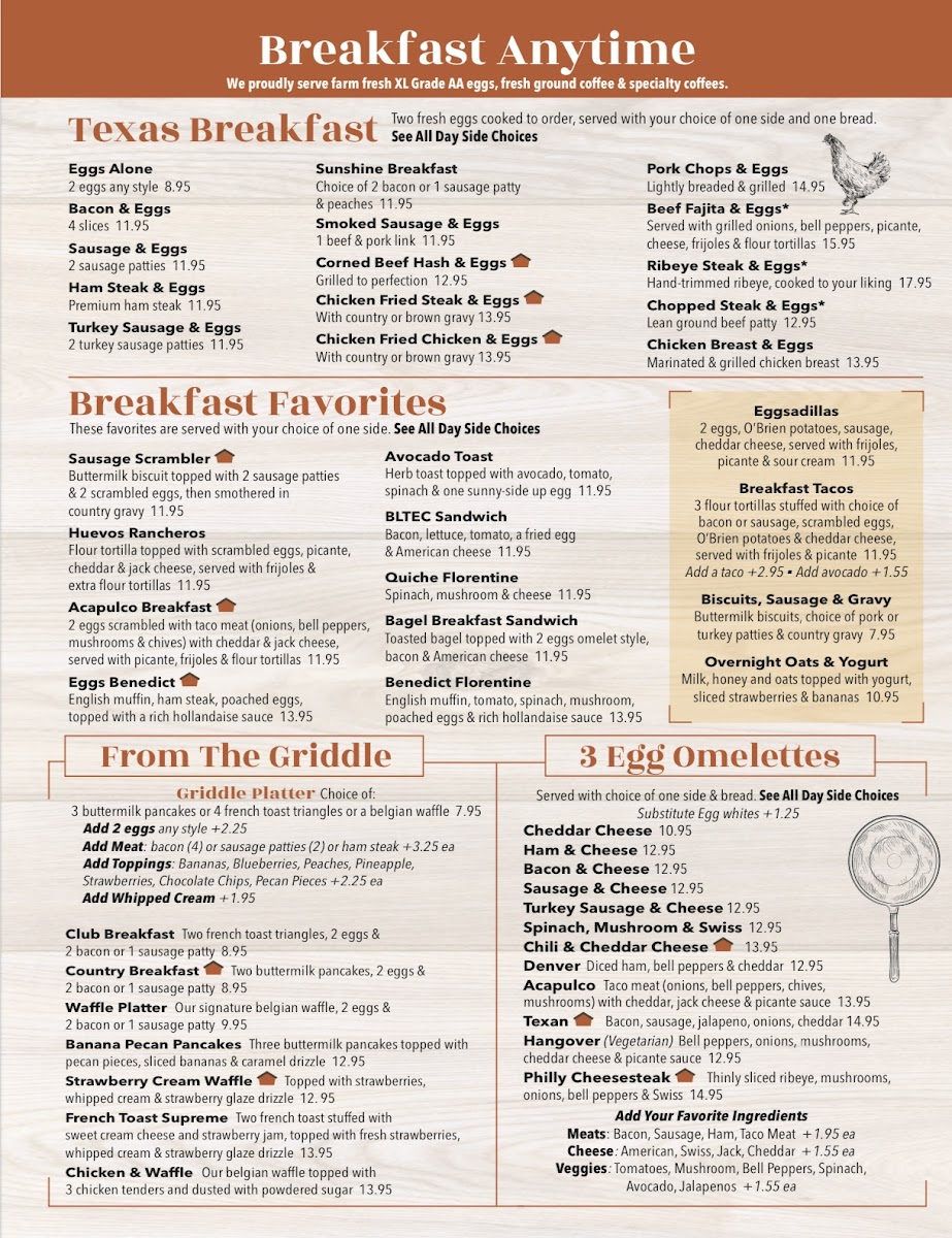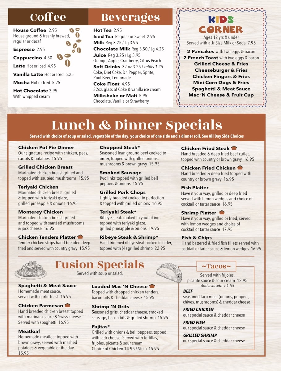 The menu features standout items like the Sausage Scrambler and Huevos Rancheros, both served with hearty sides that kickstart your day. For lunch, indulge in a Chef’s Salad or hearty homemade soups that warm the soul. The food is expertly prepared, ensuring every bite is savory and satisfying.